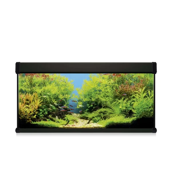 El Kit BASE incluye*: filtro exterior, pantalla LED, alimento para peces, acondicionadores, termómetro, termocalentador y guía del acuario.