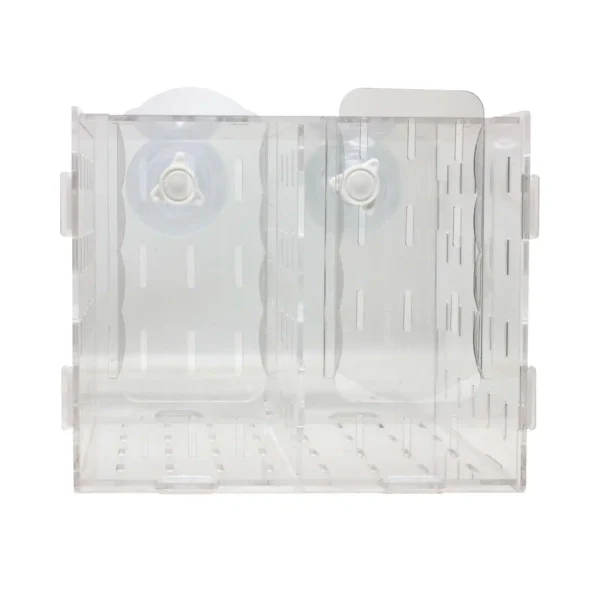 Estos separadores de metacrilato son ideales para separar y aislar a peces problemáticos en el acuario sin necesidad de sacarlos. También son ideales como parideras o incubadoras para peces que vayan a criar en acuarios comunitarios y muy útiles como pequeñas enfermerías donde se quieran meter peces en recuperación o convalecientes, para evitar el acoso de sus compañeros. Sus agarres de ventosa permiten colocarlos en cualquier zona del acuario y sus paredes transparentes y con múltiples aperturas permiten un buen flujo del agua, haciendo posible su uso como refugios de algas o incluso de pequeños invertebrados dentro del mismo acuario. Los tanques de aclimatación AQUA OCEAN cuentan con distintas medidas y permite remover los separadores para adaptarse a las necesidades de cualquier acuario.